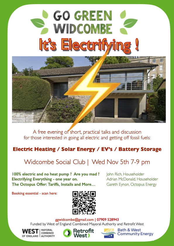 Go Green Widcombe’s current focus is to RETROFIT WIDCO2MBE! … by providing signposts to information about RETROFITTING HOMES to increase energy efficiency, aiming to tackle the current poor performance of homes…